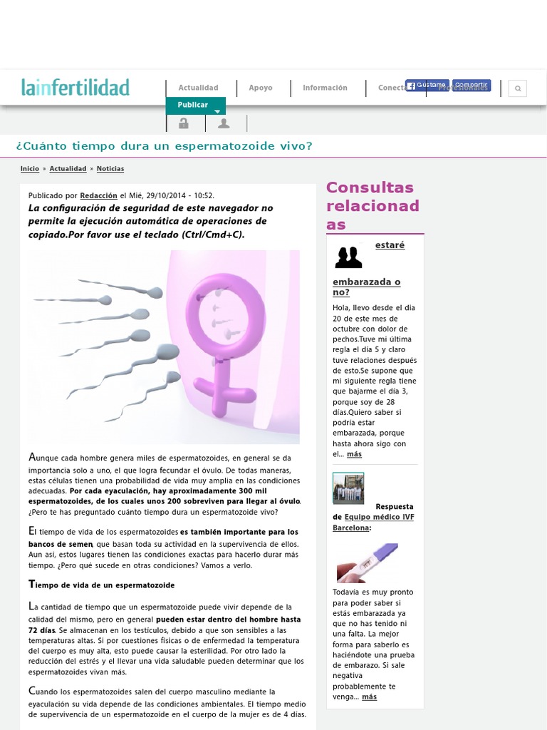 Tuve relaciones con mi pareja el 11 de mayo pero tomé la píldora del dia después el 26 de mayo volvimos a tener relaciones no tome nada ya que tengo la aplicación de cálculo de la menstruacion y esos días no había posibilidad de quedar embarazada mi periodo debía llegar el 30 de mayo pero no me bajo por tal motivo el 3 de junio me hise una prueba en sangre salio. Cuánto tarda el espermatozoide en fecundar el óvulo. Después del coito el esperma puede vivir en el cuerpo de una mujer hasta por 6 días a la espera de que se libere un óvulo proceso llamado ovulación. Por tanto el objetivo final del espermatozoide es fecundar al ovocito pero no es una tarea fácil. Si el espermatozoide se une a un óvulo se conoce como fecundación. Vida útil de los huevos. En el séptimo día o el octavo día el blastocisto comenzará su implantación en el útero.